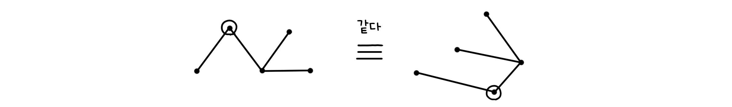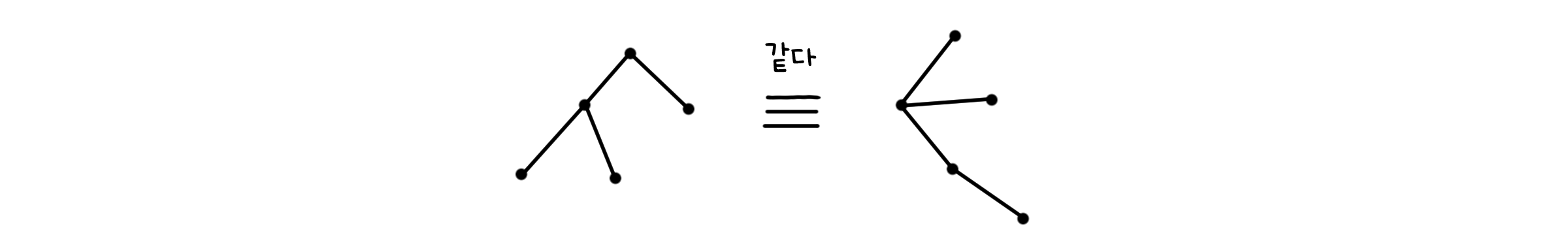 7장에서 말했듯이 다시 한 번, 두 트리가 서로 동형사상인지 파악할 때 무작정 모양을 바꿔가며 확인하는 것은 상당히 까다로운 일입니다. 그래서 어떤 때는 두 트리가 동형사상이 아니다는 것을 증명하는게 더 빠를 때도 있습니다. 게다가 트리는 그래프와 달리 루트 노드나 자식과 부모 사이의 관계 등 지켜야 하는 조건이 더 많으니 완전히 다른 모습의 트리를 세는 것이 더 쉬울 수도 있습니다. 그리고 상당히 적은 수의 점에 대해서는 직접 모양을 세면서 확인할 수도 있고요.
