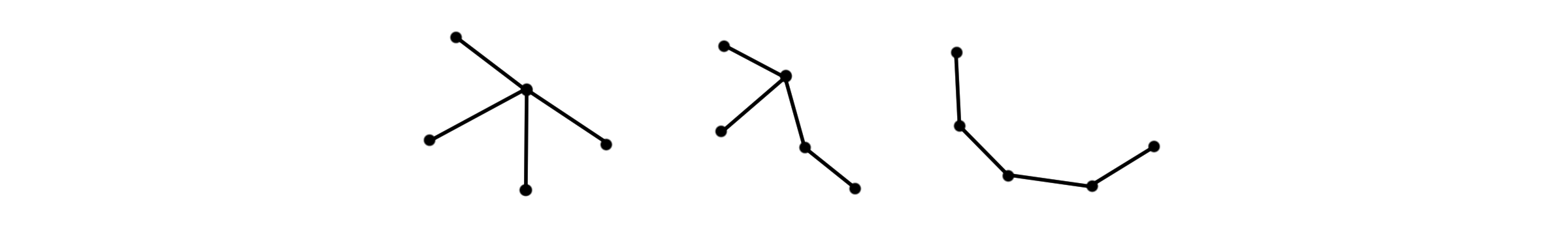 점의 개수가 5개인 트리는 3개의 서로 다른 비동형 트리를 가진다.