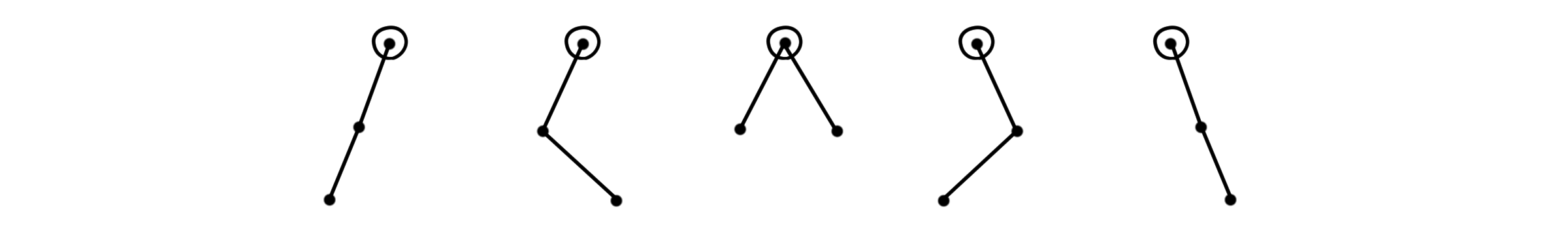 점의 개수가 3개인 이진 트리는 5개의 서로 다른 비동형 트리를 가진다.