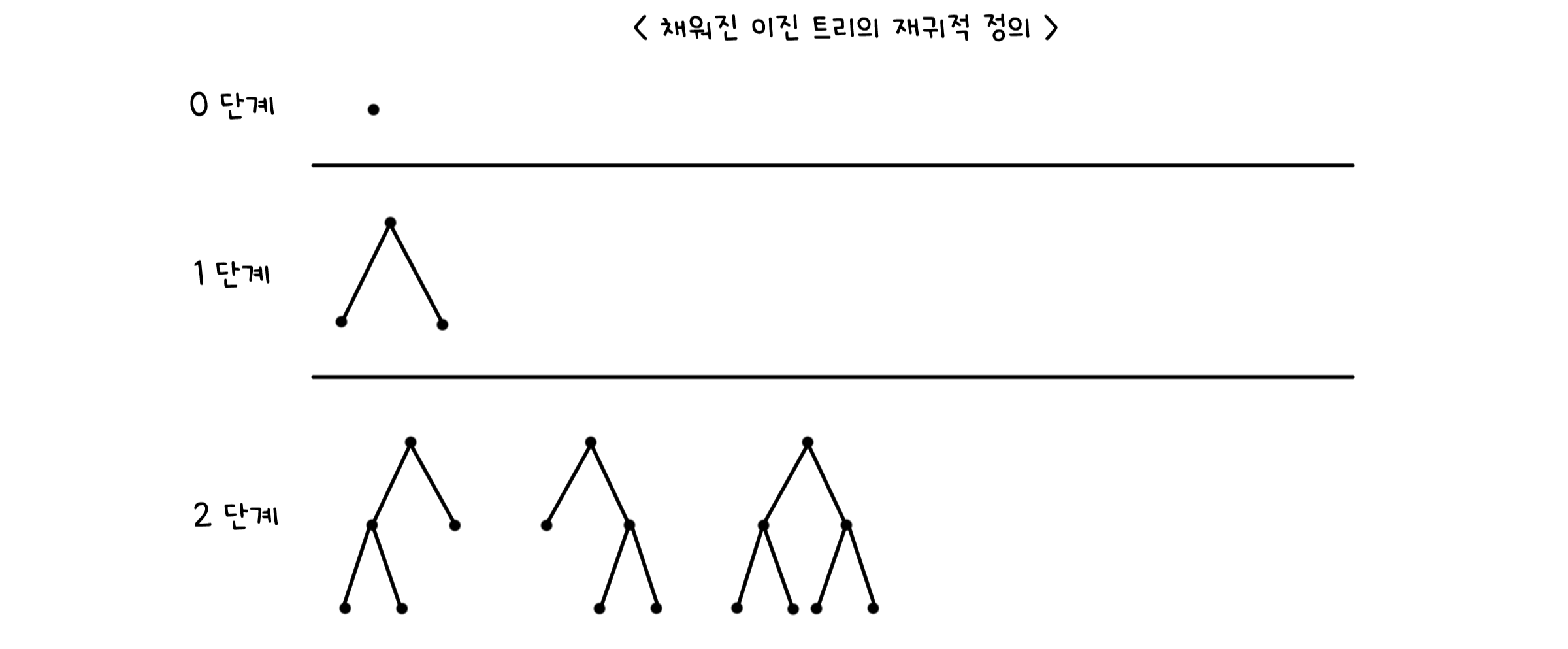 | 채워진 이진 트리 | 점 $r$ | 채워진 이진 트리 $T_i \; (i=1, 2)$와 새로운 점 $r$에 대해 $(r, r_i) \in T$인 트리 $T$ |