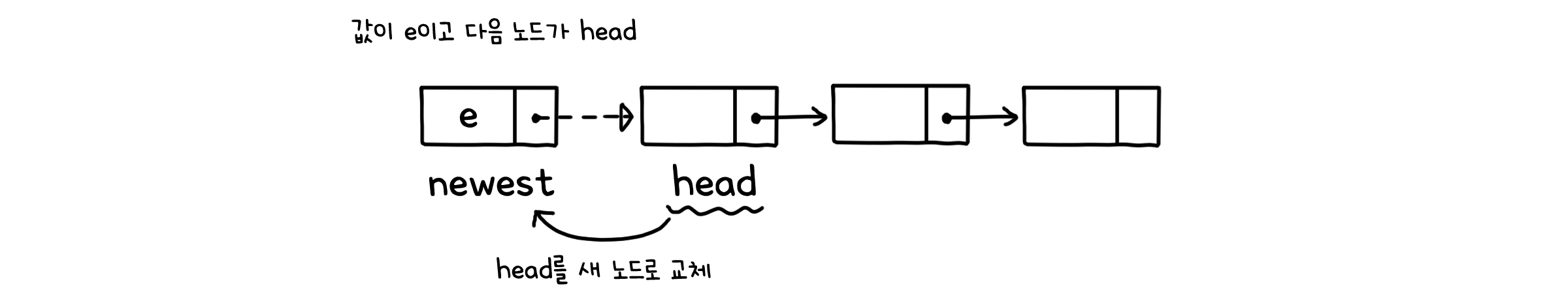 Node<E> newest = new Node<>(e, head); // 값이 e이고 다음 노드가 head