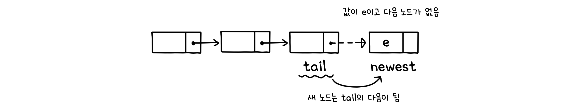 tail.setNext(newest); // 새 노드는 tail의 다음이 됨