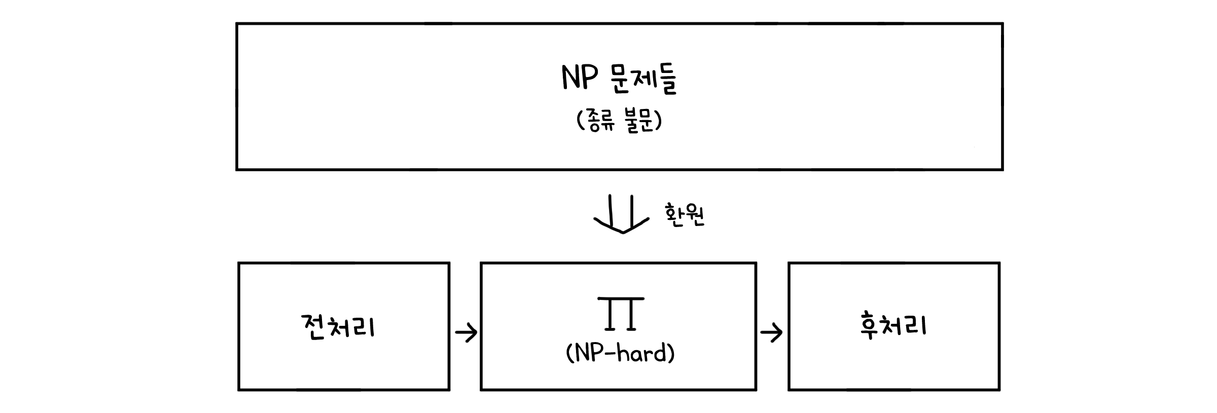 하지만 문제가 있다면… 너무 어렵습니다. 정의 자체가 ‘최소한’ NP 문제들 만큼 어려운 문제들이니, 그보다 더 어려운 문제들도 있다는 뜻입니다. 여기서 다항시간의 알고리즘의 존재 여부를 논하는 것은 상당히 힘든 일입니다. 그래서 우리는 좀 더 특수한 경우에 대해 다뤄볼 것입니다.