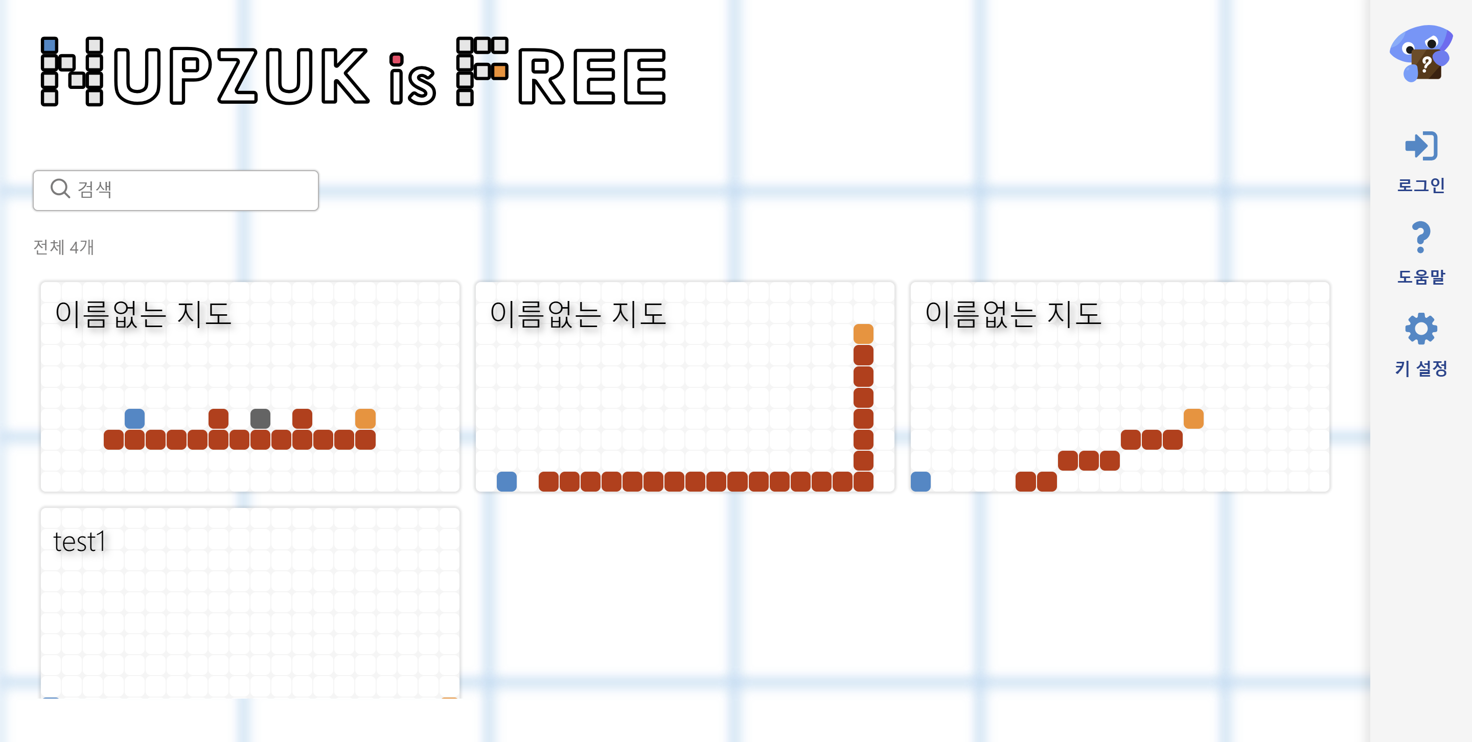 넙죽이의 지도교수님이 특별한 장치를 만들었습니다. 물론 장치가 안전한지 시험하는 것은 넙죽이의 몫이죠! NupzukisFree는 사용자가 직접 게임 지도를 만들고 플레이하며 다른 사용자와 공유할 수 있는 플랫포머 게임 공유 플랫폼입니다.